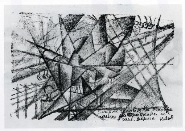 Wir bieten Ihnen eine handgefertigte Reproduktion auf Leinwand des berühmten Kunstwerks 'Tod des Mannes auf dem Flugzeug und dem Zug in der gleichen Zeit' von Kazimir Malevich, aus dem Reproduktionsmuseum.