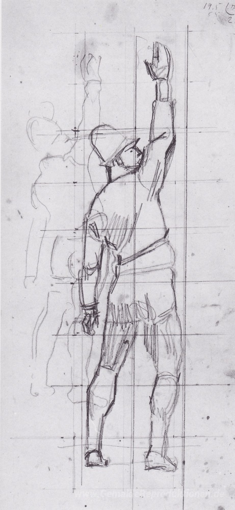 Wir bieten Ihnen eine handgefertigte Reproduktion auf Leinwand des berühmten Kunstwerks 'Vereidigung von hinten' von Ferdinand Hodler, aus dem Reproduktionsmuseum.