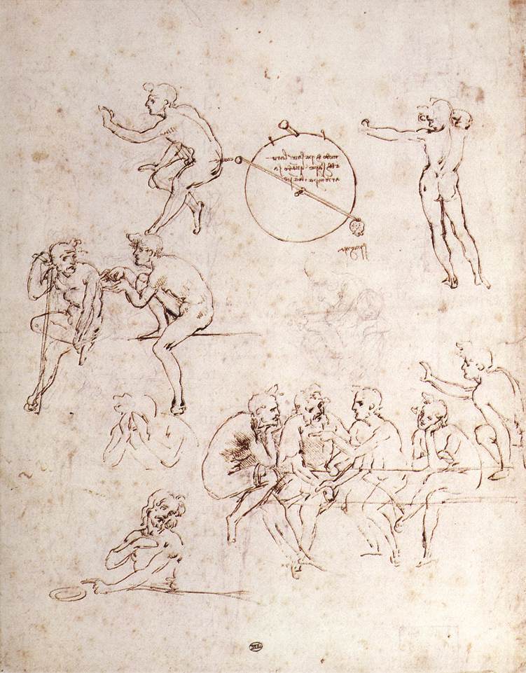 Wir bieten Ihnen eine handgefertigte Reproduktion auf Leinwand des berühmten Kunstwerks 'Verschiedene Figurenstudien' von Leonardo da Vinci, aus dem Reproduktionsmuseum.