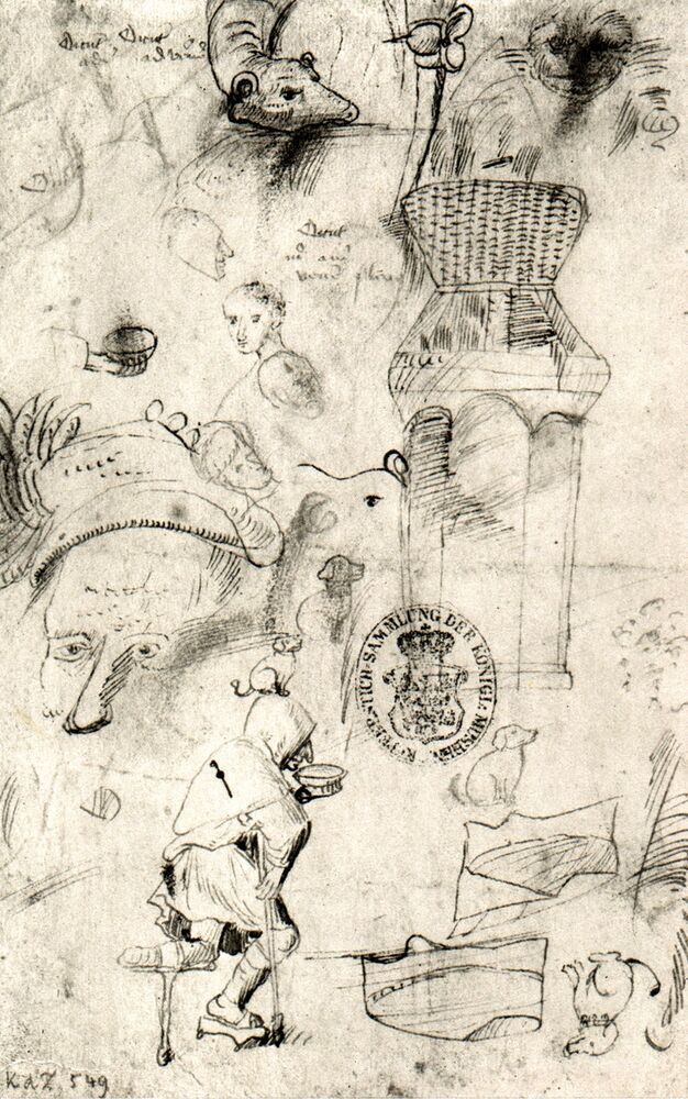 Wir bieten Ihnen eine handgefertigte Reproduktion auf Leinwand des berühmten Kunstwerks 'Verschiedene Skizzen und ein Bettler' von Hieronymus Bosch, aus dem Reproduktionsmuseum.