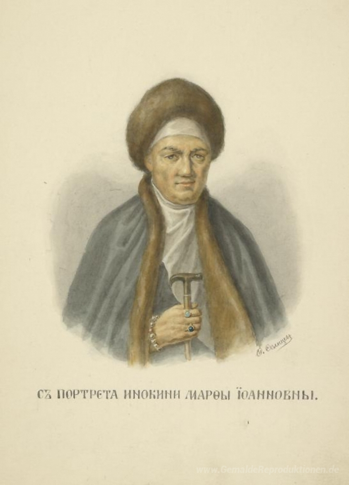 Wir bieten Ihnen eine handgefertigte Reproduktion auf Leinwand des berühmten Kunstwerks 'Von Porträt der Nonne Martha Iwanowna' von Fyodor Solntsev, aus dem Reproduktionsmuseum.