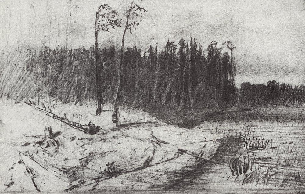 Wir bieten Ihnen eine handgefertigte Reproduktion auf Leinwand des berühmten Kunstwerks 'Wald in der Nähe des Wassers' von Arkhip Kuindzhi, aus dem Reproduktionsmuseum.