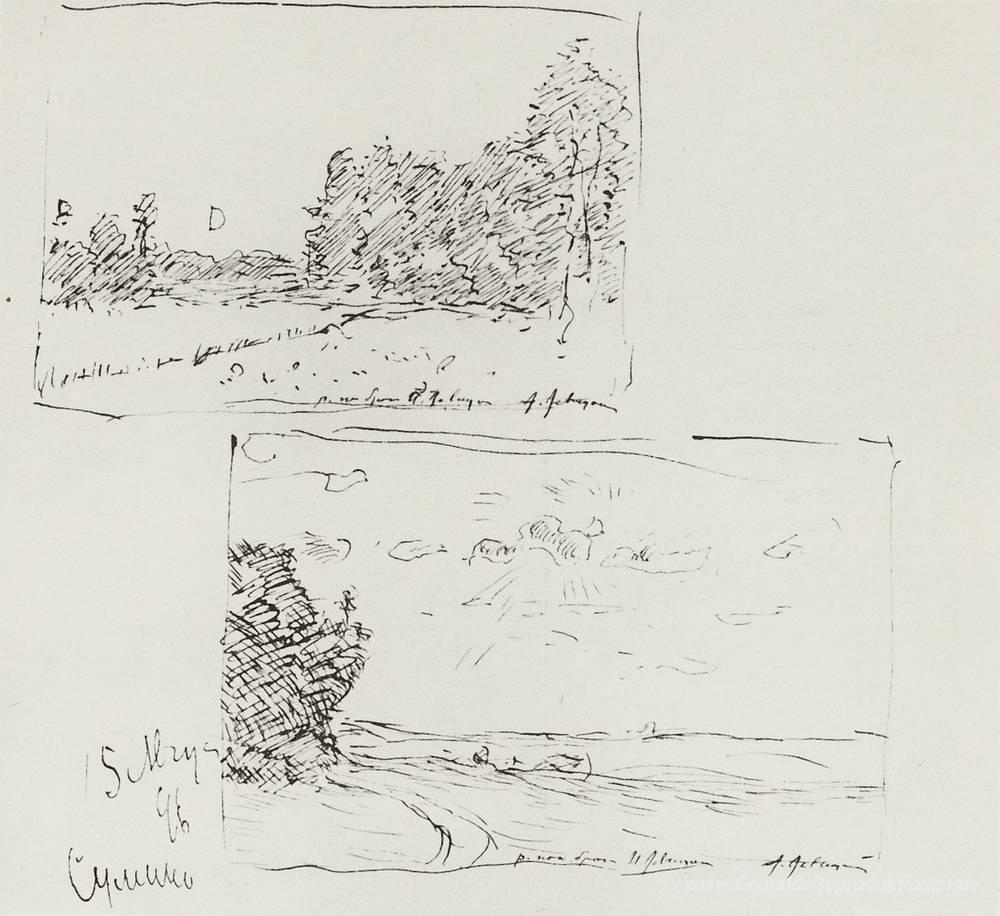 Wir bieten Ihnen eine handgefertigte Reproduktion auf Leinwand des berühmten Kunstwerks 'Waldrand, Aufgang des Mondes / Waldrand, Sonne hinter den Wolken' von Isaac Levitan, aus dem Reproduktionsmuseum.