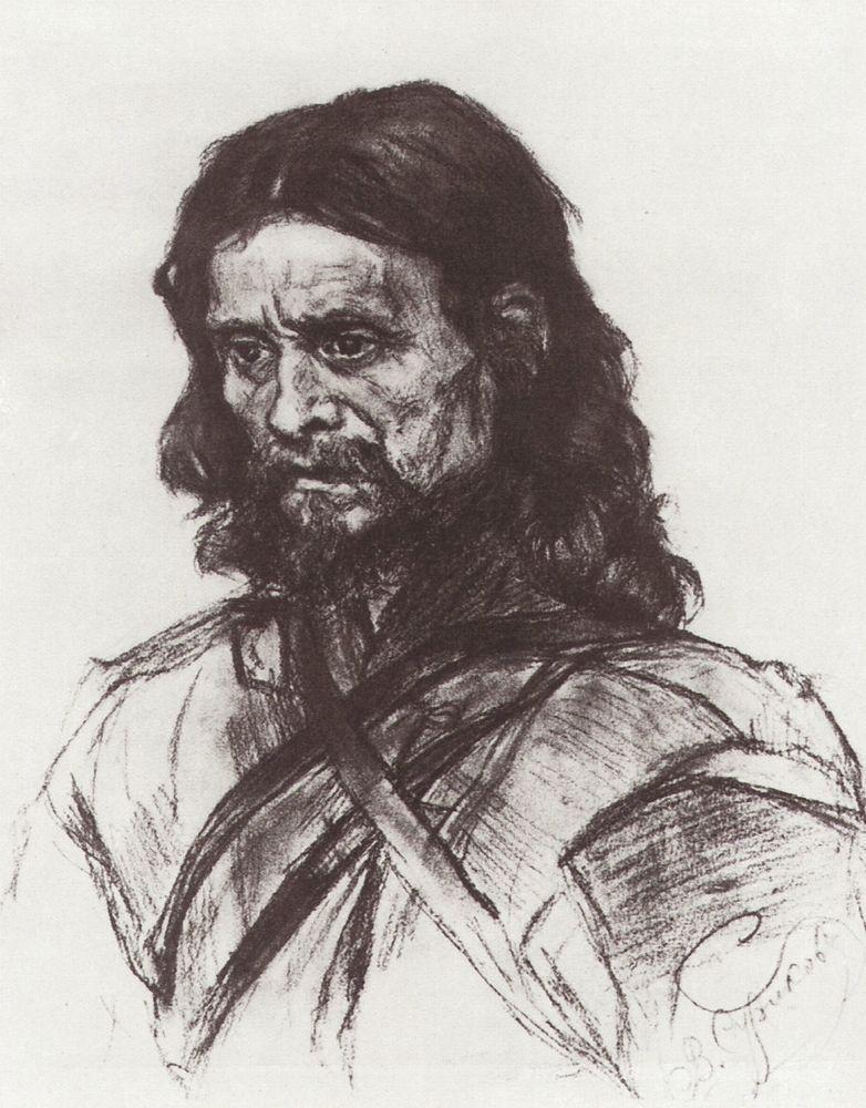 Wir bieten Ihnen eine handgefertigte Reproduktion auf Leinwand des berühmten Kunstwerks 'Wanderer' von Vasily Surikov, aus dem Reproduktionsmuseum.