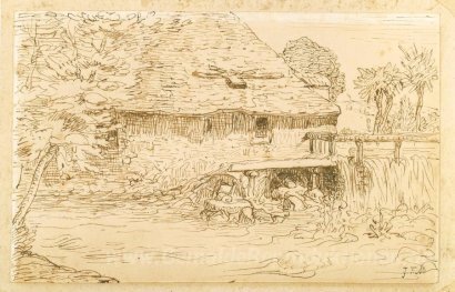 Wir bieten Ihnen eine handgefertigte Reproduktion auf Leinwand des berühmten Kunstwerks 'Wassermühle in der Nähe von Vichy' von Jean-Francois Millet, aus dem Reproduktionsmuseum.