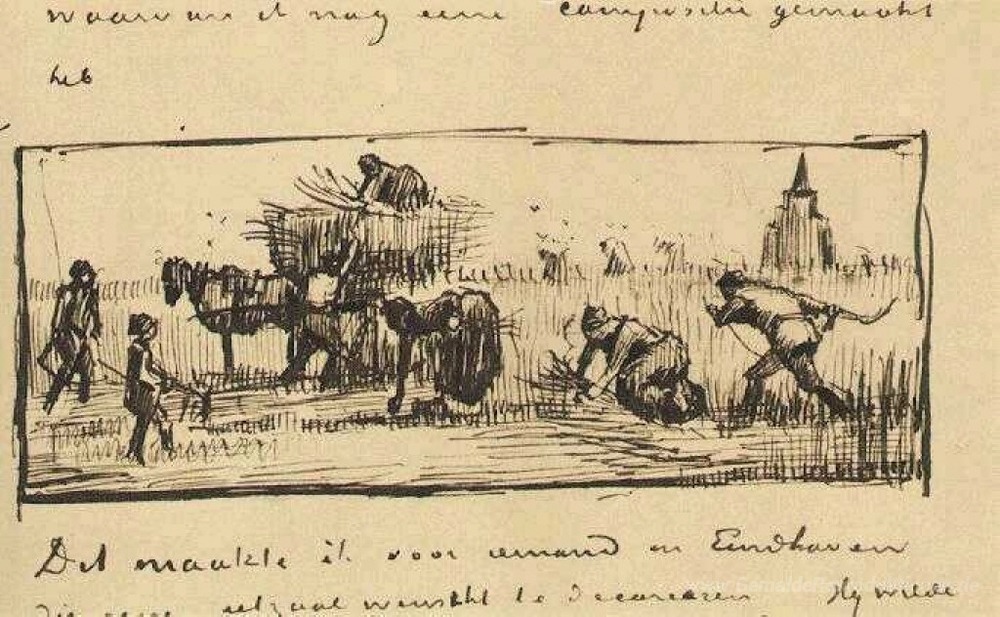 Wir bieten Ihnen eine handgefertigte Reproduktion auf Leinwand des berühmten Kunstwerks 'Weizenernte' von Vincent van Gogh, aus dem Reproduktionsmuseum.