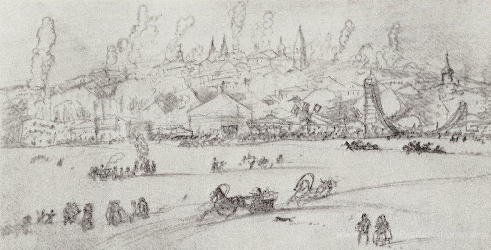 Wir bieten Ihnen eine handgefertigte Reproduktion auf Leinwand des berühmten Kunstwerks 'Winterfest auf dem Fluss' von Boris Kustodiev, aus dem Reproduktionsmuseum.