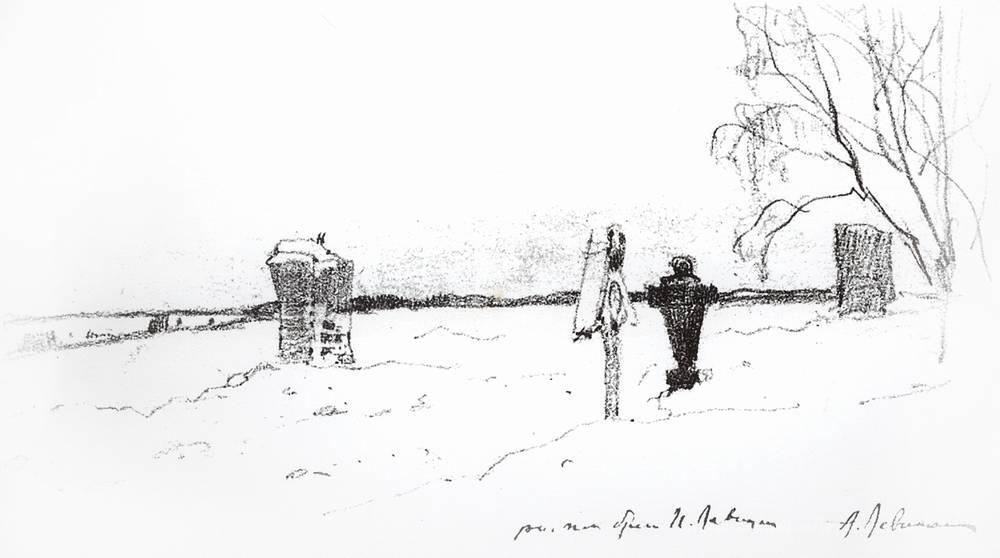 Wir bieten Ihnen eine handgefertigte Reproduktion auf Leinwand des berühmten Kunstwerks 'Winterlandschaft. Friedhof.' von Isaac Levitan, aus dem Reproduktionsmuseum.
