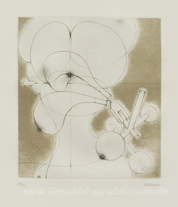 Wir bieten Ihnen eine handgefertigte Reproduktion auf Leinwand des berühmten Kunstwerks 'Woman MG-Schützen in einem Zustand der Gnade' von Hans Bellmer, aus dem Reproduktionsmuseum.