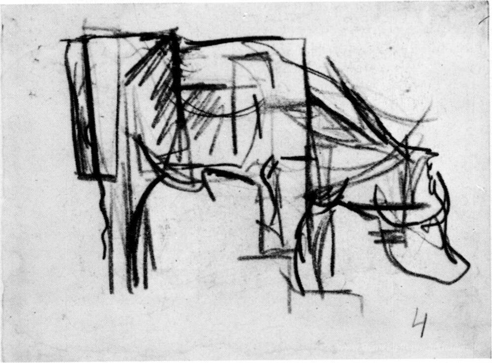Wir bieten Ihnen eine handgefertigte Reproduktion auf Leinwand des berühmten Kunstwerks 'Zusammensetzung (Die Kuh)' von Theo van Doesburg, aus dem Reproduktionsmuseum.