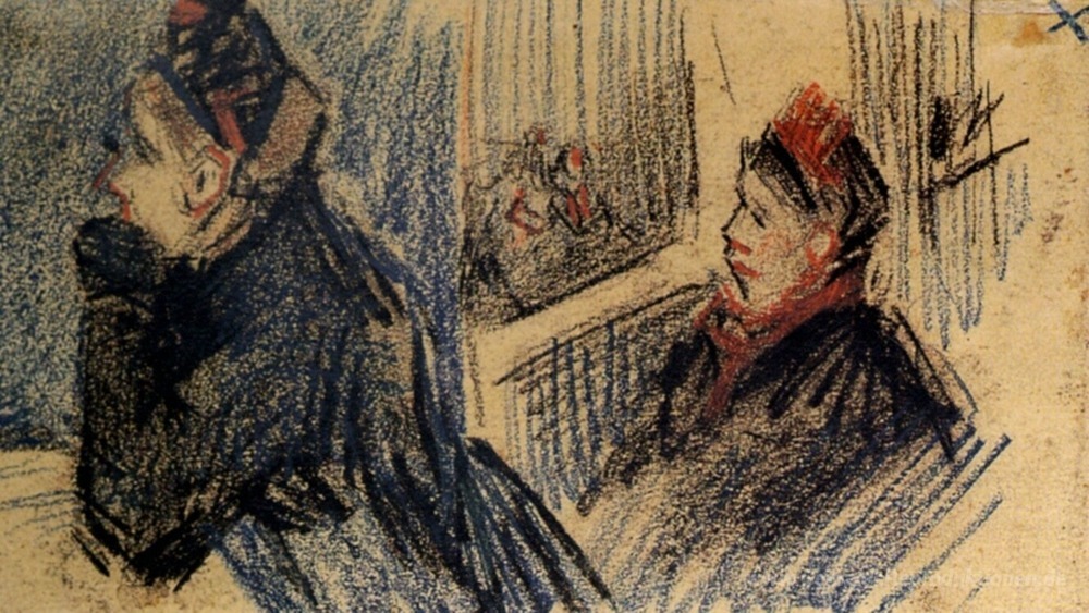Wir bieten Ihnen eine handgefertigte Reproduktion auf Leinwand des berühmten Kunstwerks 'Zwei Frauen in einem Balkon Box' von Vincent van Gogh, aus dem Reproduktionsmuseum.