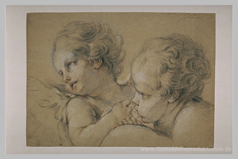 Wir bieten Ihnen eine handgefertigte Reproduktion auf Leinwand des berühmten Kunstwerks 'Zwei Köpfe Gefahr' von Jean-Honore Fragonard, aus dem Reproduktionsmuseum.