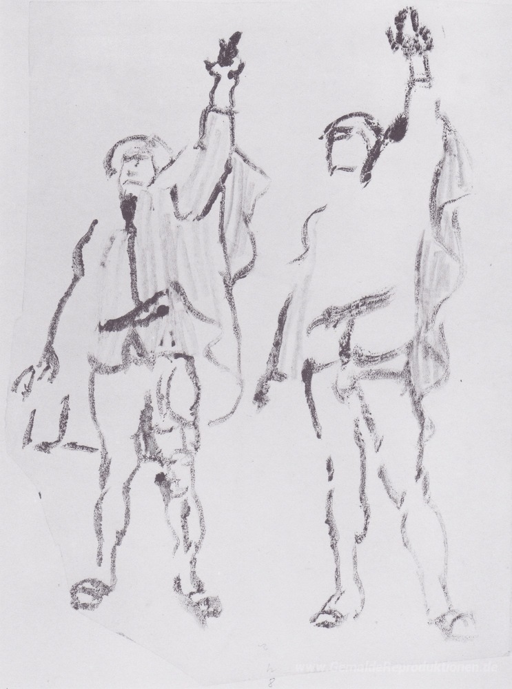 Wir bieten Ihnen eine handgefertigte Reproduktion auf Leinwand des berühmten Kunstwerks 'Zwei Vereidigung' von Ferdinand Hodler, aus dem Reproduktionsmuseum.