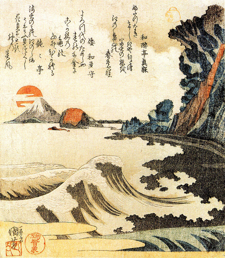 Wir bieten Ihnen eine handgefertigte Reproduktion auf Leinwand des berühmten Kunstwerks 'Ansicht von Mt. Fuji' von Utagawa Kuniyoshi, aus dem Reproduktionsmuseum.