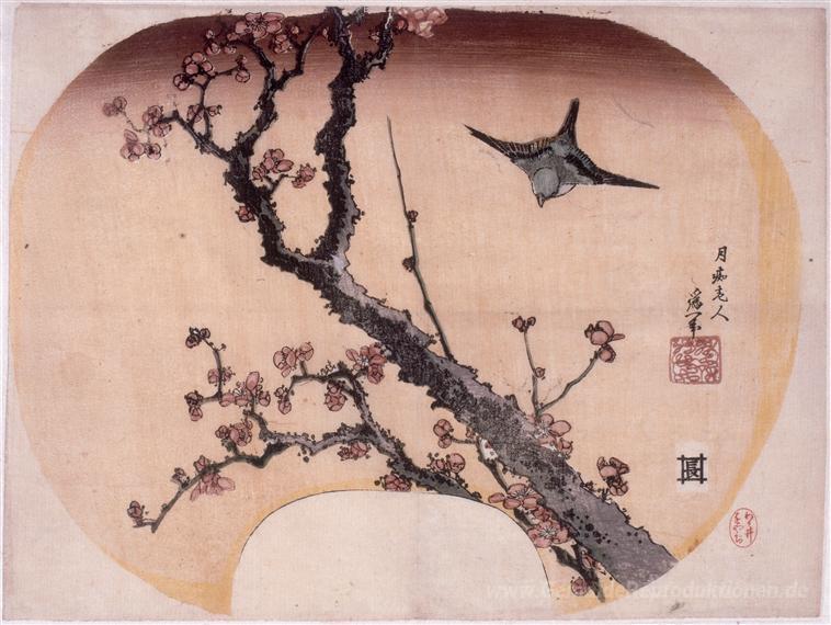 Wir bieten Ihnen eine handgefertigte Reproduktion auf Leinwand des berühmten Kunstwerks 'Kirschblüten und Warbler' von Katsushika Hokusai, aus dem Reproduktionsmuseum.