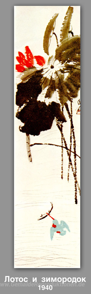 Wir bieten Ihnen eine handgefertigte Reproduktion auf Leinwand des berühmten Kunstwerks 'Lotus und Eisvogel' von Qi Baishi, aus dem Reproduktionsmuseum.