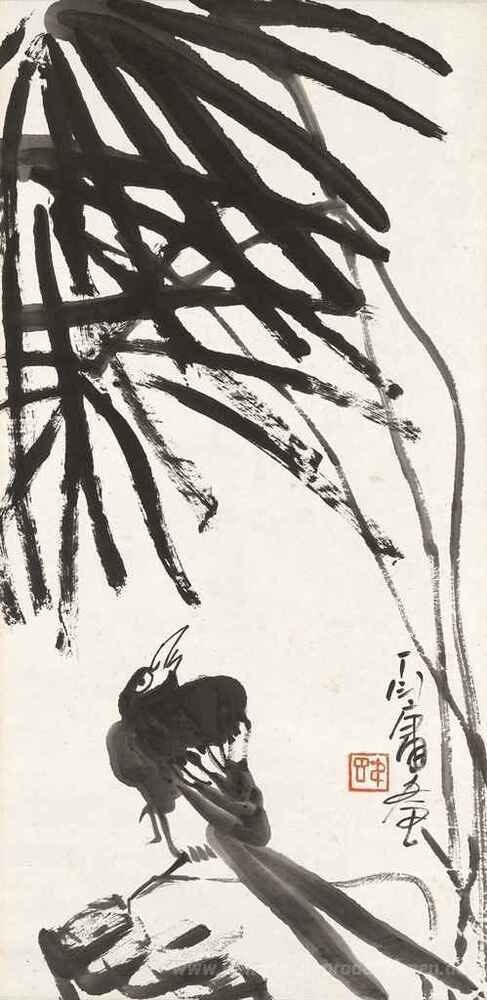Wir bieten Ihnen eine handgefertigte Reproduktion auf Leinwand des berühmten Kunstwerks 'Vogel unter Baum' von Ding Yanyong, aus dem Reproduktionsmuseum.