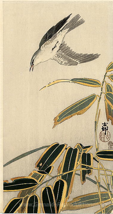 Wir bieten Ihnen eine handgefertigte Reproduktion auf Leinwand des berühmten Kunstwerks 'Wheater und Bambus' von Ohara Koson, aus dem Reproduktionsmuseum.