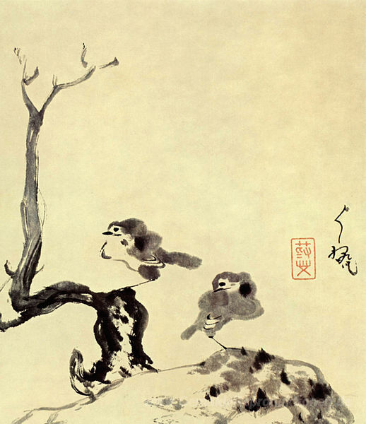 Wir bieten Ihnen eine handgefertigte Reproduktion auf Leinwand des berühmten Kunstwerks 'Zwei Vögel' von Bada Shanren, aus dem Reproduktionsmuseum.