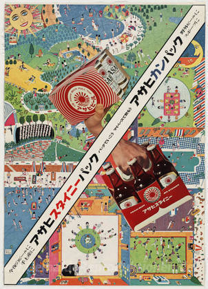 Wir bieten Ihnen eine handgefertigte Reproduktion auf Leinwand des berühmten Kunstwerks 'Asahi-Bier' von Tadanori Yokoo, aus dem Reproduktionsmuseum.