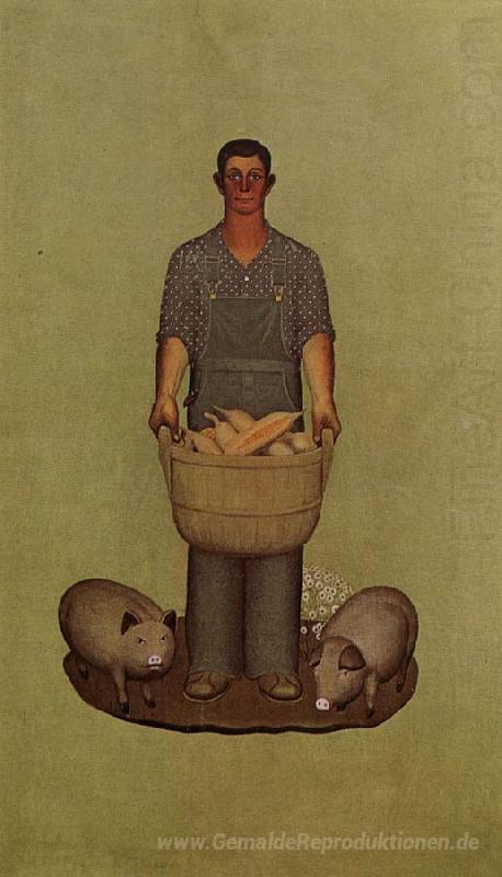 Die Verwendung von Ölfarbe ermöglicht eine farbintensive Gestaltung und feine Details, die das Gemälde in jedem Raum zum strahlenden Mittelpunkt machen. Die harmonische Wirkung von Iowa Artikel schafft eine beruhigende Atmosphäre, die jeden Betrachter in eine Welt der Ruhe und Nostalgie entführt. Lassen Sie Ihr Zuhause durch die zeitlose Schönheit und den einzigartigen Stil von Grant Wood erstrahlen und erleben Sie, wie Kunst die Stimmung Ihrer Umgebung nachhaltig verbessern kann.