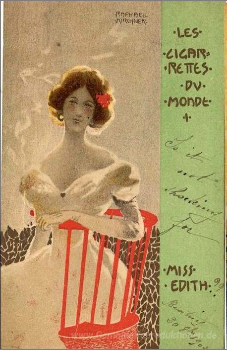 Wir bieten Ihnen eine handgefertigte Reproduktion auf Leinwand des berühmten Kunstwerks 'Zigaretten der Welt' von Raphael Kirchner, aus dem Reproduktionsmuseum.