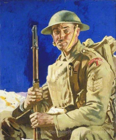 Wir bieten Ihnen eine handgefertigte Reproduktion auf Leinwand des berühmten Kunstwerks 'Ein Grenadier Guardsman 1917' von William Orpen, aus dem Reproduktionsmuseum.