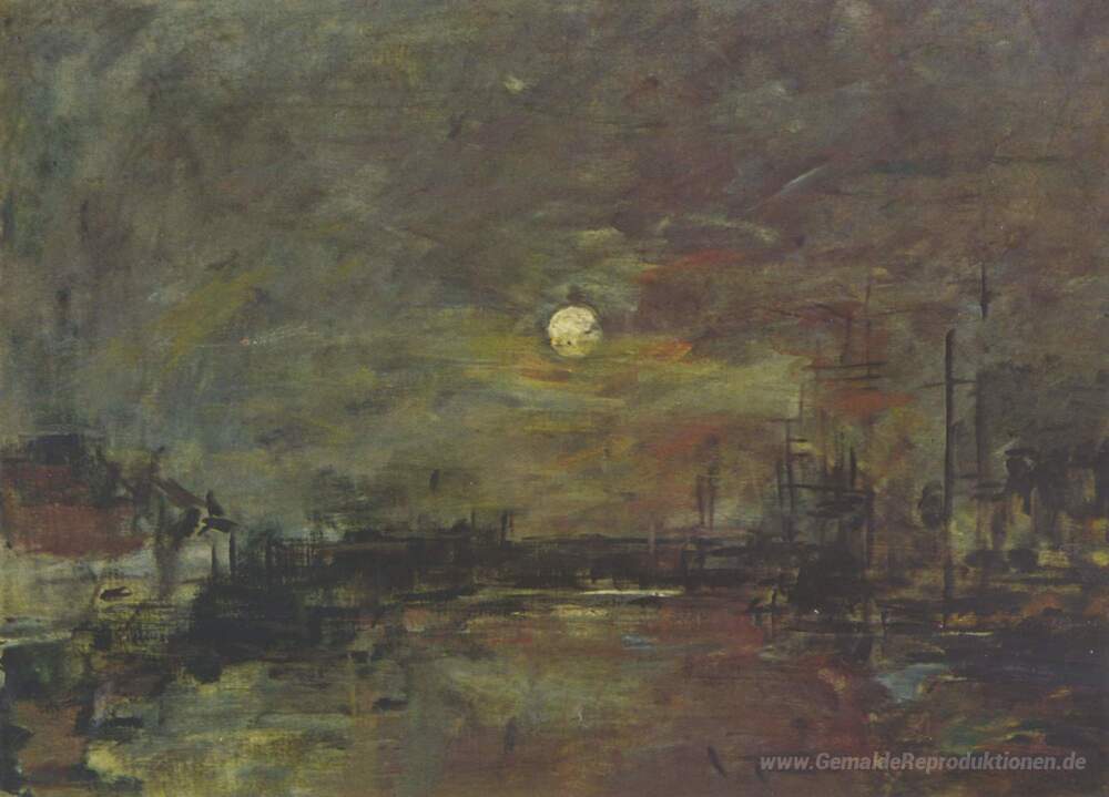 Wir bieten Ihnen eine handgefertigte Reproduktion auf Leinwand des berühmten Kunstwerks 'Abenddämmerung über den Hafen von Le Havre' von Eugene Boudin, aus dem Reproduktionsmuseum.
