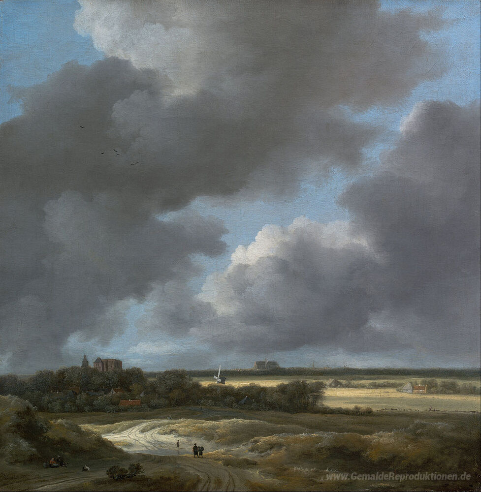 Wir bieten Ihnen eine handgefertigte Reproduktion auf Leinwand des berühmten Kunstwerks 'Ansicht von Alkmaar' von Jacob Isaakszoon van Ruisdael, aus dem Reproduktionsmuseum.
