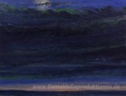 Wir bieten Ihnen eine handgefertigte Reproduktion auf Leinwand des berühmten Kunstwerks 'Mond-Aufstieg' von Jane Wilson, aus dem Reproduktionsmuseum.