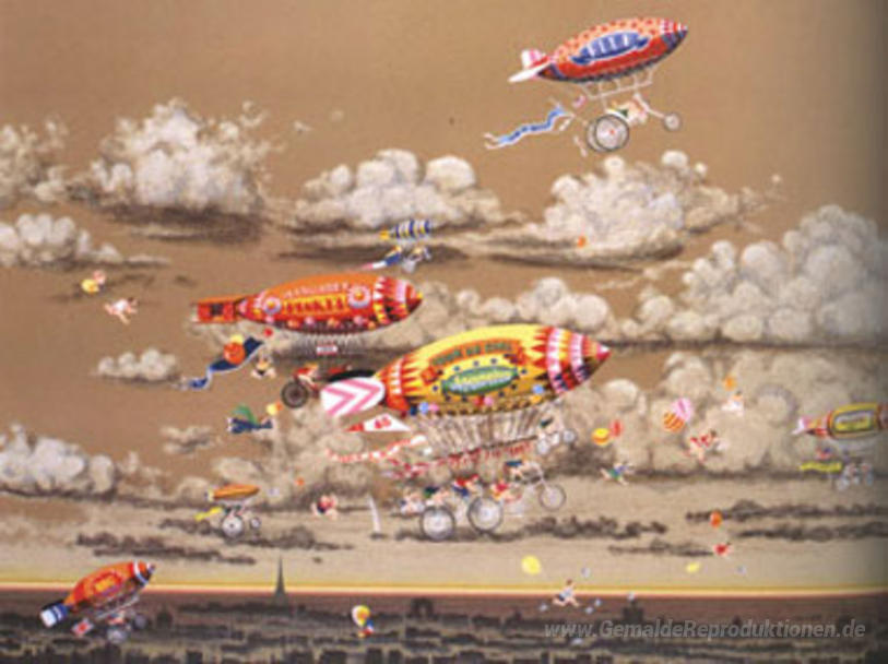 Wir bieten Ihnen eine handgefertigte Reproduktion auf Leinwand des berühmten Kunstwerks 'Sky Cycles' von Hiro Yamagata, aus dem Reproduktionsmuseum.