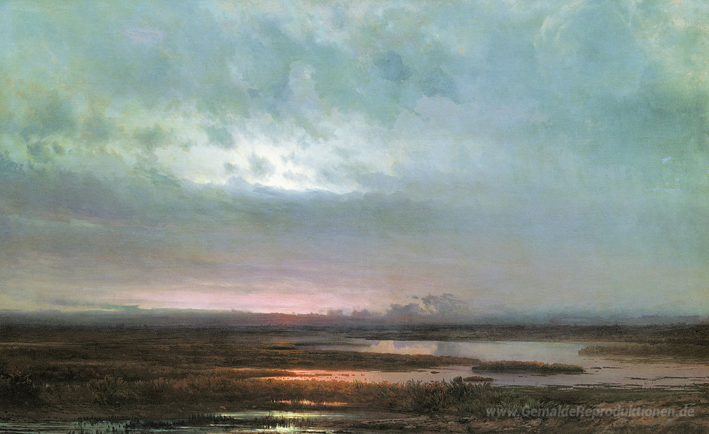 Wir bieten Ihnen eine handgefertigte Reproduktion auf Leinwand des berühmten Kunstwerks 'Sonnenuntergang über einer Sumpf-' von Aleksey Savrasov, aus dem Reproduktionsmuseum.