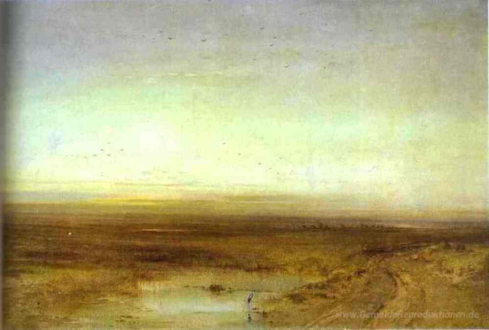 Wir bieten Ihnen eine handgefertigte Reproduktion auf Leinwand des berühmten Kunstwerks 'Sonnenuntergang' von Aleksey Savrasov, aus dem Reproduktionsmuseum.