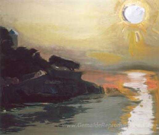 Wir bieten Ihnen eine handgefertigte Reproduktion auf Leinwand des berühmten Kunstwerks 'Sonnenuntergang' von Panayiotis Tetsis, aus dem Reproduktionsmuseum.