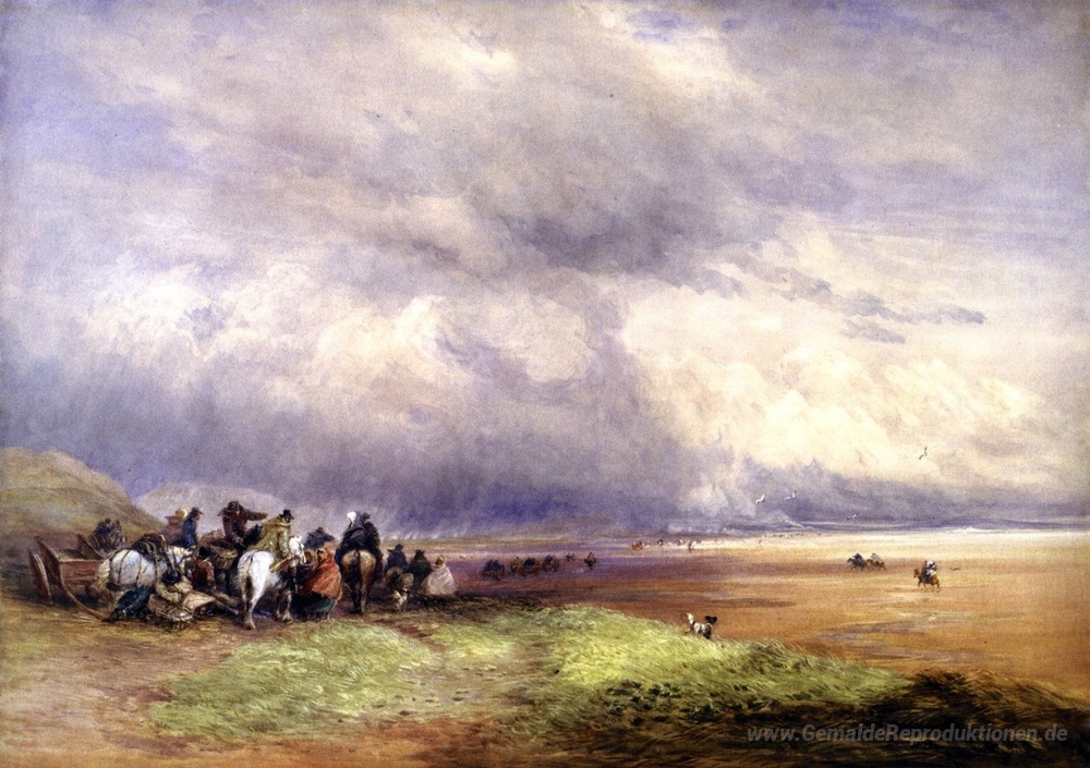 Wir bieten Ihnen eine handgefertigte Reproduktion auf Leinwand des berühmten Kunstwerks 'Ulverston Sands' von David Cox, aus dem Reproduktionsmuseum.