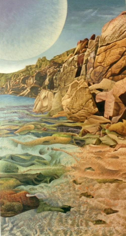 Wir bieten Ihnen eine handgefertigte Reproduktion auf Leinwand des berühmten Kunstwerks 'Über dem Ozean' von Godfrey Blow, aus dem Reproduktionsmuseum.