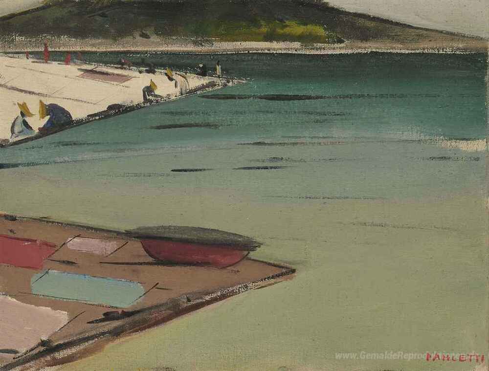 Wir bieten Ihnen eine handgefertigte Reproduktion auf Leinwand des berühmten Kunstwerks 'Abaeté (Serie Bahia, No. 28)' von Jose Pancetti, aus dem Reproduktionsmuseum.