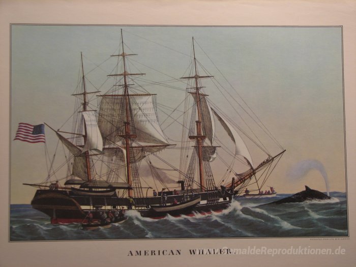 Wir bieten Ihnen eine handgefertigte Reproduktion auf Leinwand des berühmten Kunstwerks 'Amerikanischer Whaler' von Currier and Ives, aus dem Reproduktionsmuseum.