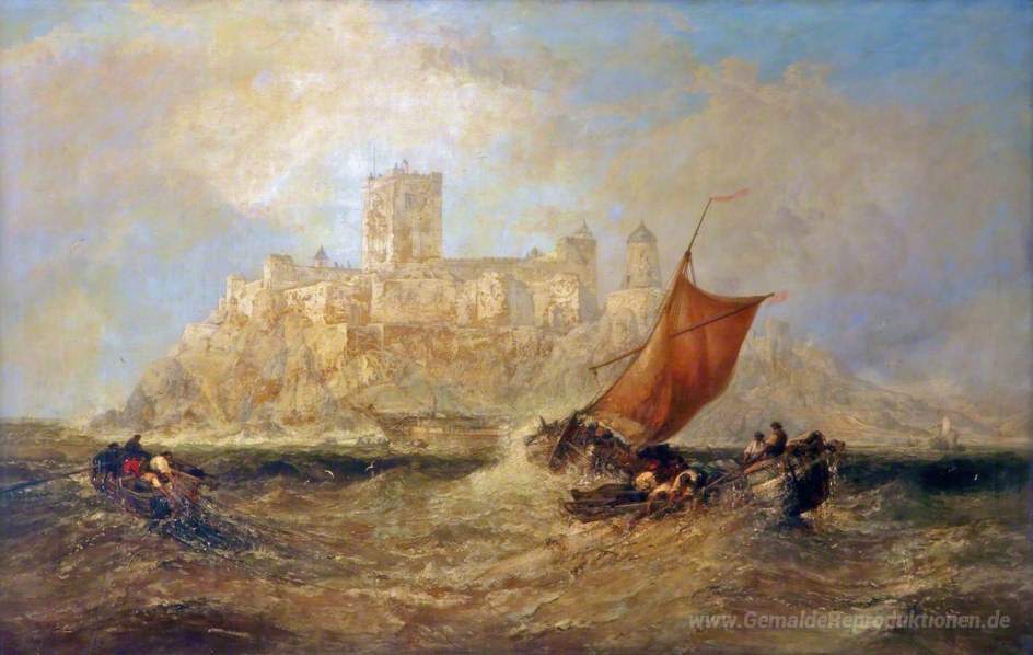 Wir bieten Ihnen eine handgefertigte Reproduktion auf Leinwand des berühmten Kunstwerks 'Bamburgh Castle' von James Webb , aus dem Reproduktionsmuseum.