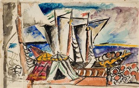 Wir bieten Ihnen eine handgefertigte Reproduktion auf Leinwand des berühmten Kunstwerks 'Boats' von Pyotr Konchalovsky, aus dem Reproduktionsmuseum.