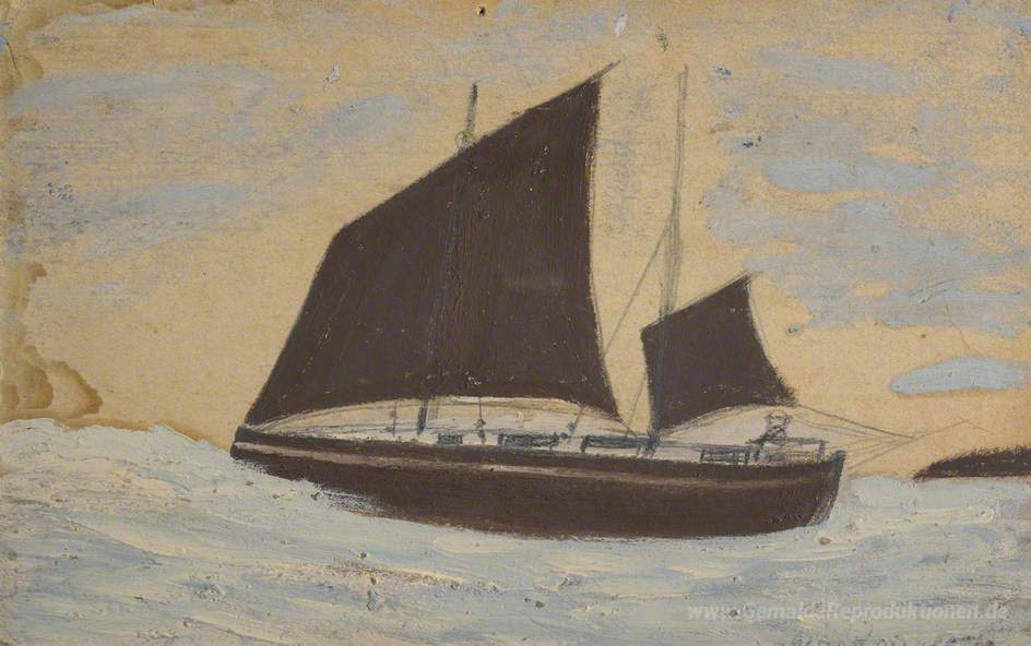 Wir bieten Ihnen eine handgefertigte Reproduktion auf Leinwand des berühmten Kunstwerks 'Brown Segelboot' von Alfred Wallis, aus dem Reproduktionsmuseum.