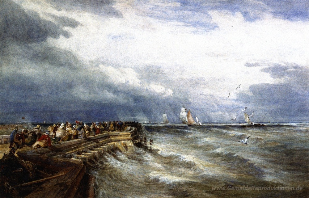 Wir bieten Ihnen eine handgefertigte Reproduktion auf Leinwand des berühmten Kunstwerks 'Calais Pier' von David Cox, aus dem Reproduktionsmuseum.