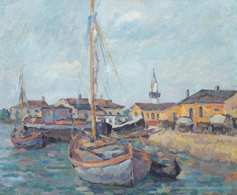 Wir bieten Ihnen eine handgefertigte Reproduktion auf Leinwand des berühmten Kunstwerks 'Cherhanale la Tulcea' von Nicolae Darascu, aus dem Reproduktionsmuseum.