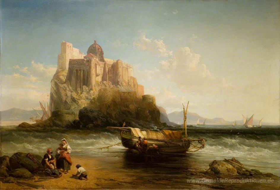 Wir bieten Ihnen eine handgefertigte Reproduktion auf Leinwand des berühmten Kunstwerks 'Das Schloss von Ischia' von James Webb , aus dem Reproduktionsmuseum.
