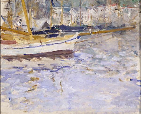 Wir bieten Ihnen eine handgefertigte Reproduktion auf Leinwand des berühmten Kunstwerks 'Der Hafen von Nizza' von Berthe Morisot, aus dem Reproduktionsmuseum.