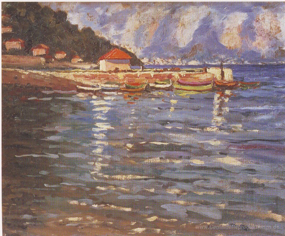 Wir bieten Ihnen eine handgefertigte Reproduktion auf Leinwand des berühmten Kunstwerks 'Der Hafen von St. Jean Cap Ferrat' von Winston Churchill, aus dem Reproduktionsmuseum.