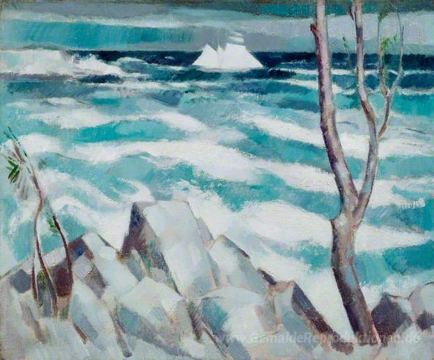 Wir bieten Ihnen eine handgefertigte Reproduktion auf Leinwand des berühmten Kunstwerks 'Die Breeze, Antibes' von John Duncan Fergusson, aus dem Reproduktionsmuseum.