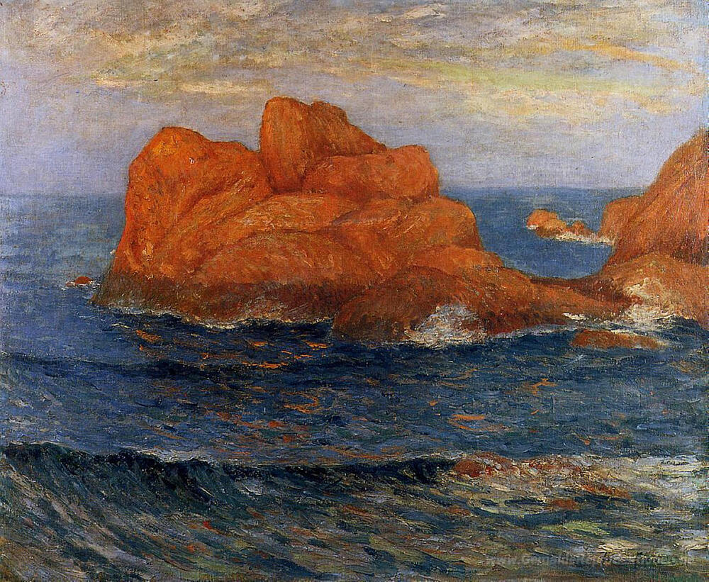 Wir bieten Ihnen eine handgefertigte Reproduktion auf Leinwand des berühmten Kunstwerks 'Die roten Felsen an der Schönheit Ile' von Maxime Maufra, aus dem Reproduktionsmuseum.