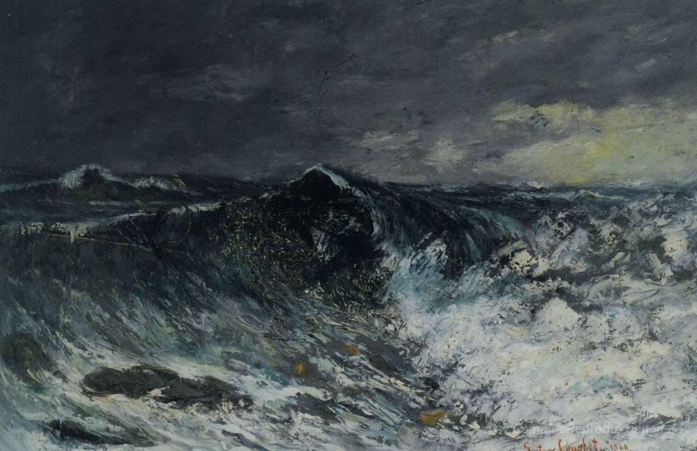 Wir bieten Ihnen eine handgefertigte Reproduktion auf Leinwand des berühmten Kunstwerks 'Die Welle' von Gustave Courbet, aus dem Reproduktionsmuseum.
