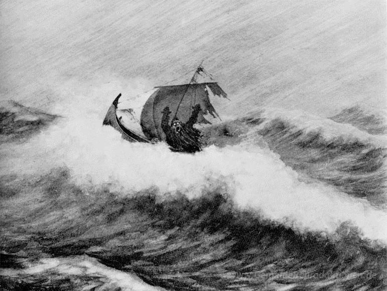 Wir bieten Ihnen eine handgefertigte Reproduktion auf Leinwand des berühmten Kunstwerks 'Draugen' von Theodor Severin Kittelsen, aus dem Reproduktionsmuseum.